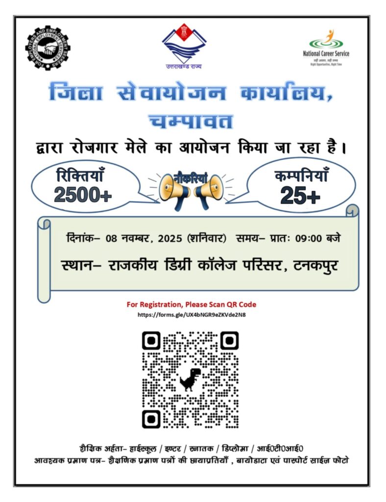 राजकीय महाविद्यालय टनकपुर में 8 नवम्बर, 2025 को होगा रोजगार मेला: 2500+ से अधिक पदों पर भर्ती, 25+ से ज्यादा कंपनियां लेंगी हिस्सा TapScanner 30-10-2025-16꞉57Download New Doc 10-31-2025 11.03Download